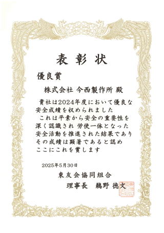東友会 安全表彰 「優良賞」 受賞(2025.5.30)